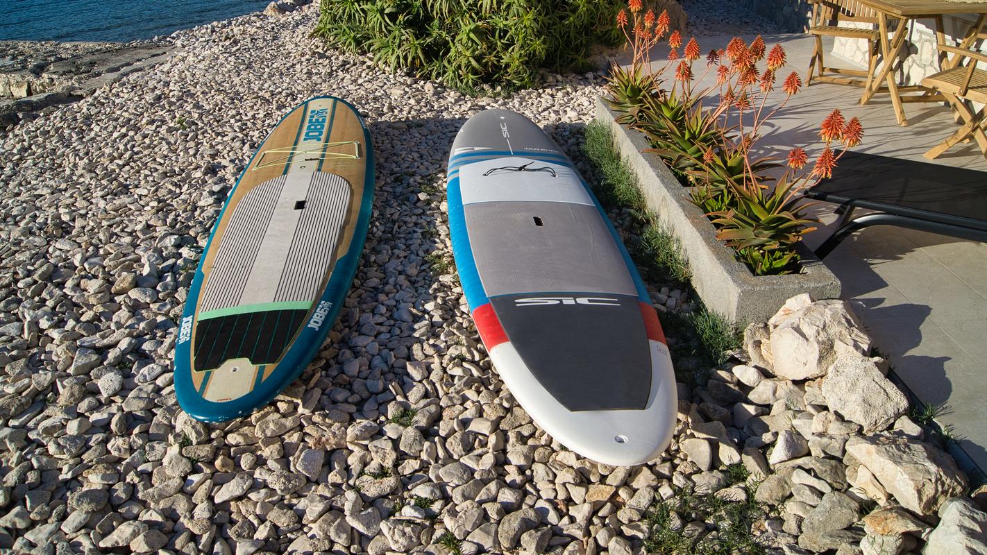 Outdoor living at Nikša is a dream. Two private terraces invite you to linger over long meals or lounge in the sun. For active souls, two stand-up paddleboards (SUP) are ready for you to explore the calm waters of the bay. After a day at the beach, enjoy the convenience of an outdoor shower or a BBQ evening under the stars—we provide everything from briquettes to utensils.